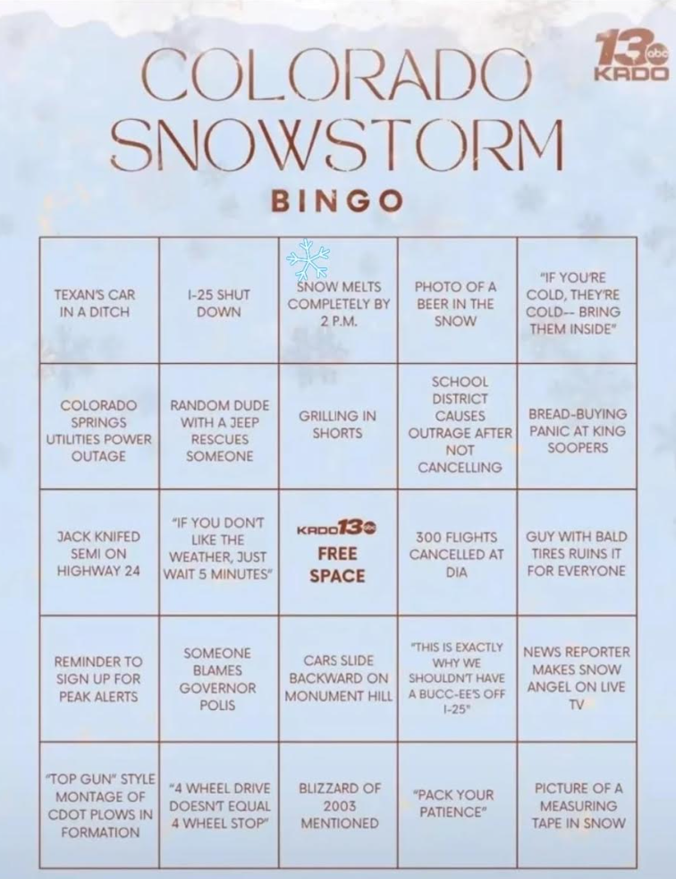 Posted by KDRO on Dec 4th 2025 KDRO Snowstorm BIngo You guys have to see this! Hillarious!!! #Funny snowstorm things #hillarious things that happen in snowstorms #KDRO #measure snow in colorado with beer cans #snow bloopers Facebook Email Print Twitter Pinterest